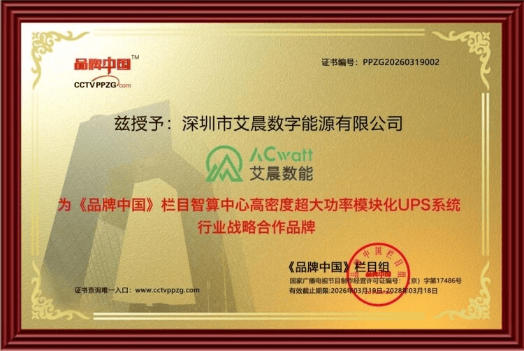 市场认可度的持续提升,进一步佐证了艾晨数能在高密度超大功率模块化UPS领域的产品与技术实力。在智算中心高密度超大功率模块化UPS细致划分领域,艾晨数能凭借三大国内首创的技术创新、过硬的产品的质量,实现市场占有率逐年快速提升。据权威市场多个方面数据显示,2024年企业主导产品全国市场占有率已超过10%,2025年进一步跃升至15%以上,稳居行业前列。2026年,公司获得“《品牌中国》栏目战略合作品牌”授牌,品牌知名度与行业影响力迈上新台阶。依托深圳总部强劲的制造能力,艾晨数能正加速构建覆盖全球的服务网络,将智能运维、预测性维护等先进服务体系推广至全球。